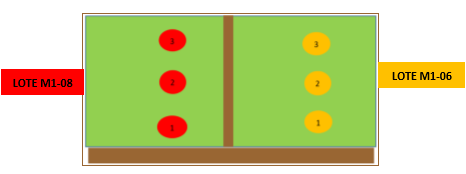 Lote M1-06 con aplicaciones MIBE en las camas 3, 8 y 13; las plantas del orden 16 de cada cama mencionada, donde las camas 3 y 8 tienen aplicaciones de guano. Las aplicaciones de MIBE fueron 5 con frecuencia semanal.