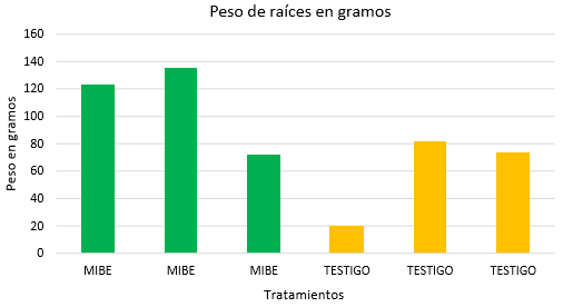 Se retiraron las celdas que contiene raíces y suelo, para luego tomar el peso de las raíces y son como se especifica en el siguiente cuadro.