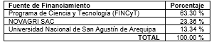 El presupuesto total del proyecto fue 315,234.00 soles, que fue financiado con recursos del estado peruano y las empresas participantes según el cuadro siguiente: